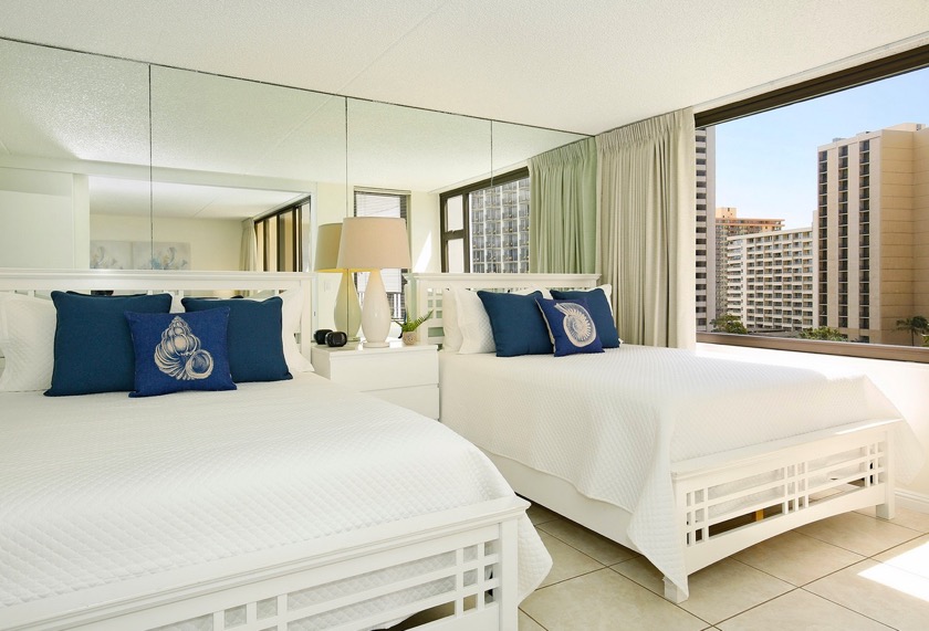 ご家族にも人気でリピーターのゲストが多いワイキキバニアン、9階にあるこちらのお部屋からはシティービュー、そしてワイキキバニアンの施設が見渡せます。施設には温水プール、ジャグジー。テニスコート、サウナ、バーベキューエリア、子供用の遊び場など充実しております。エアコン、無料駐車場、無料WiFiインターネット、ワイキキビーチ、ショッピング、レストランまで歩いてすぐ!最大5人までご宿泊可能。
